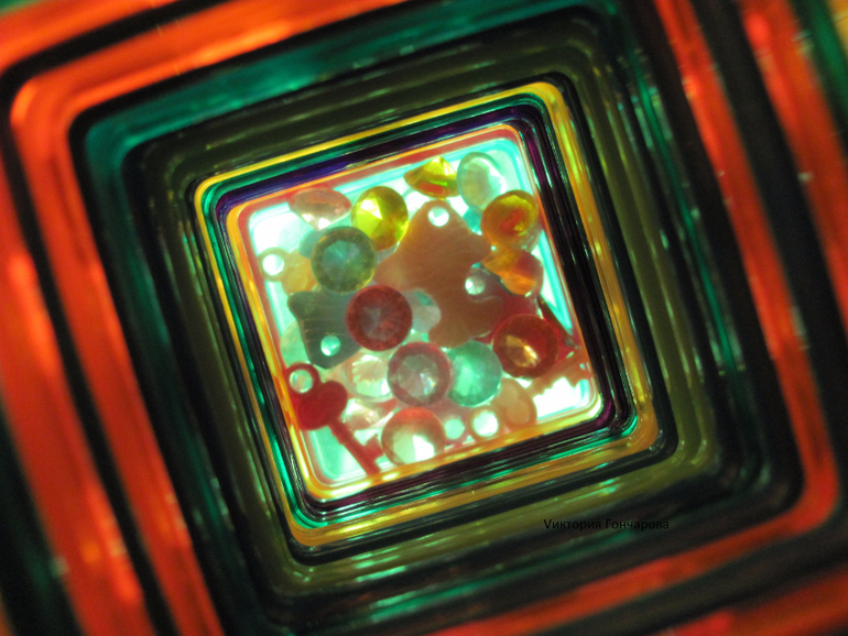А еще через них можно просматривать картинки. А помните в детстве мы играли в цветные стеклышки - клали под цветное стекло фантик и закапывали его,а потом искали.