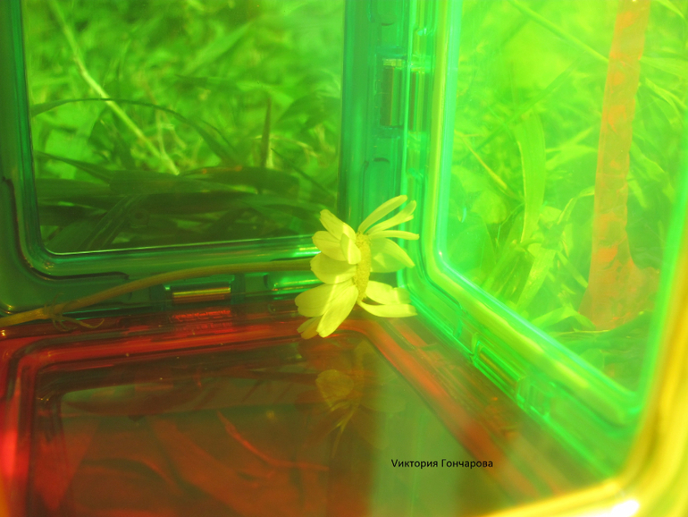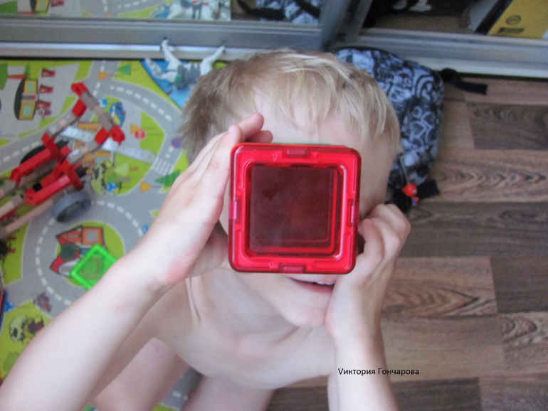 Оказывается все меняет свой цвет. До чего же интересен было ребенку этот просмотр! Каждый уголок дома был просмотрен через самодельное цветное устройство)