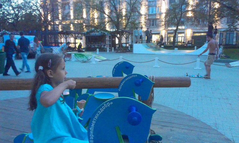 Активности на Тверском бульваре уже не работали, но катались еще скейтбордисты.