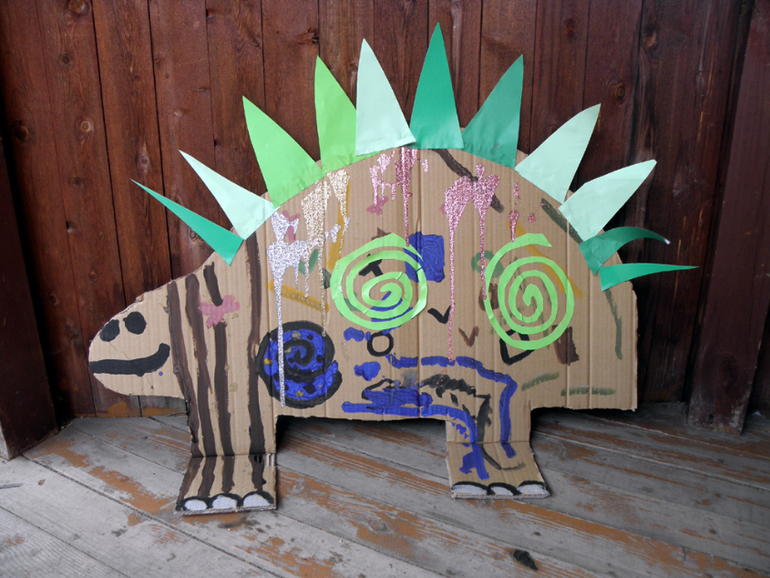 Из большого творчества с размахом покрасили на улице такого картонного динозавра: