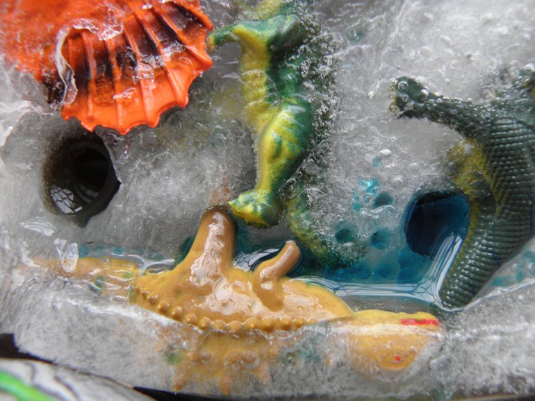 Конечно же топили лед! На это раз с помощью шприцов с разноцветным соляным раствором: