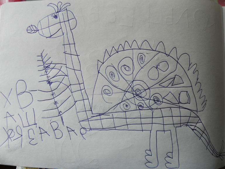 Еще у нас старшая дочь - любительница порисовать придумала своих динозавров - совершенно новые виды: