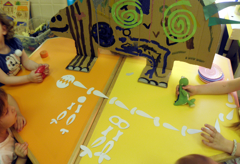 Там тоже были интересные активности, например всей группой собрать большого динозавра из костей -картонок: