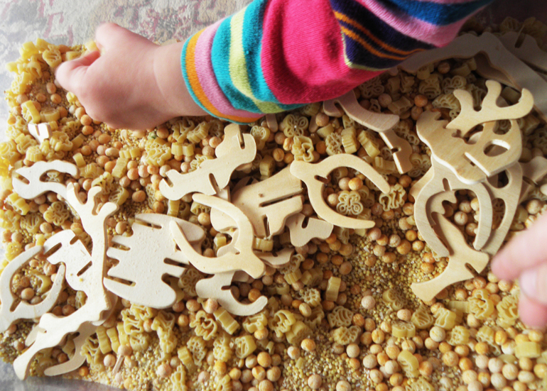 Раскопки у нас тоже присутствовали, так что разорвала набор с деревянными костями из конструктора для Лизиной коробки: