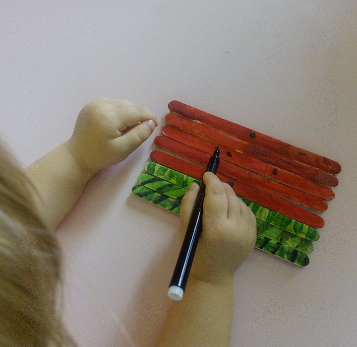 Все очень просто . Раскрашиваем палочки акварелью , фломастерами , мелками ...
