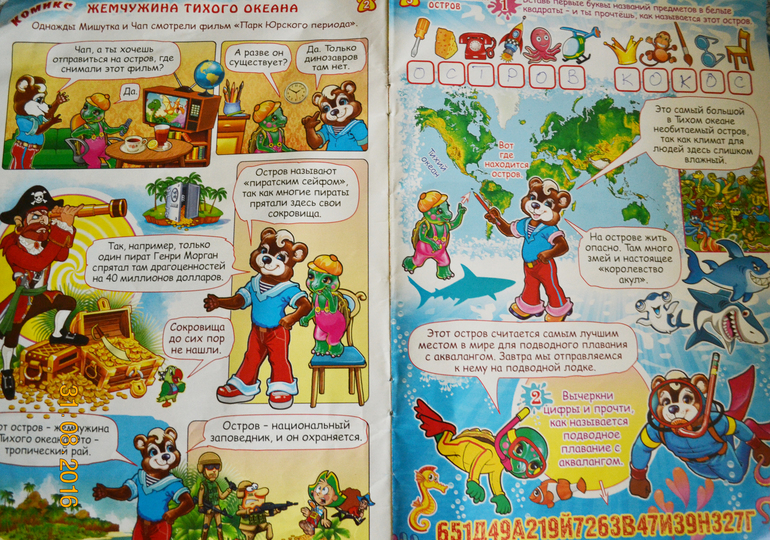 В этом номере Мишутка со своим другом Чапом отправились на остров Кокос за сокровищами. Вот несколько страниц этого замечательного и совсем недорогого журнала.