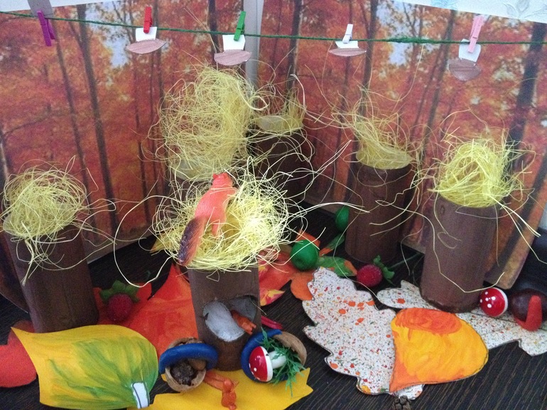Мама белка сушит грибы, а бельчата складывают запасы в кладовку. Вспомнили кстати, книгу "Приключения Дук-дука". сейчас пообедаем и прочитаем))