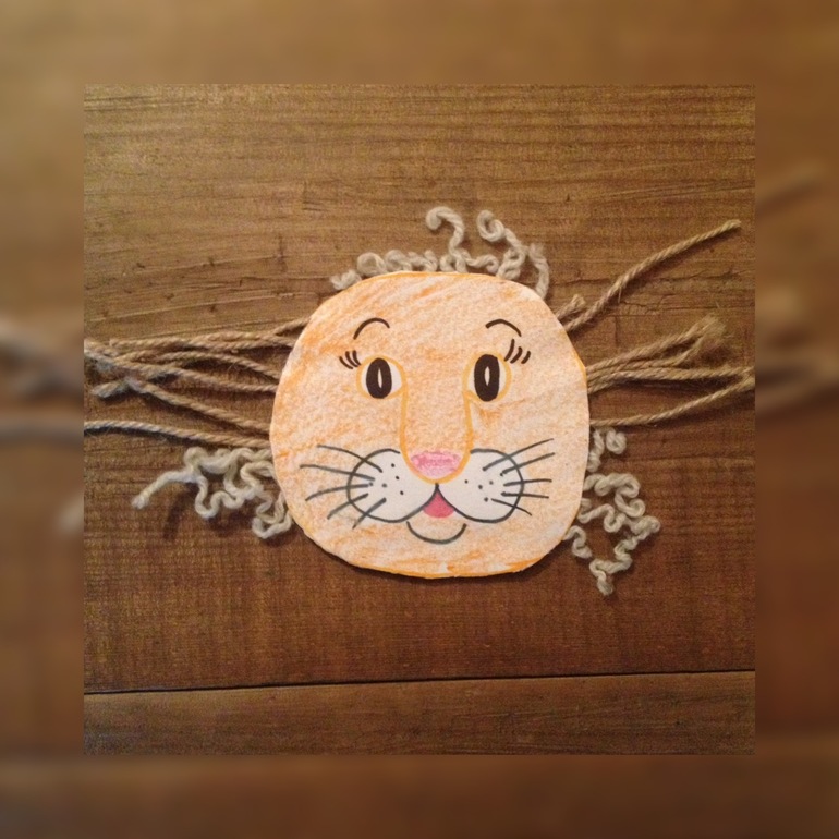"Подстриги льва". Между двумя картонками приклеила разные ниточки, сделала мордочку и ребенок с радостью подстригал под песню "Жил да был брадобрей"