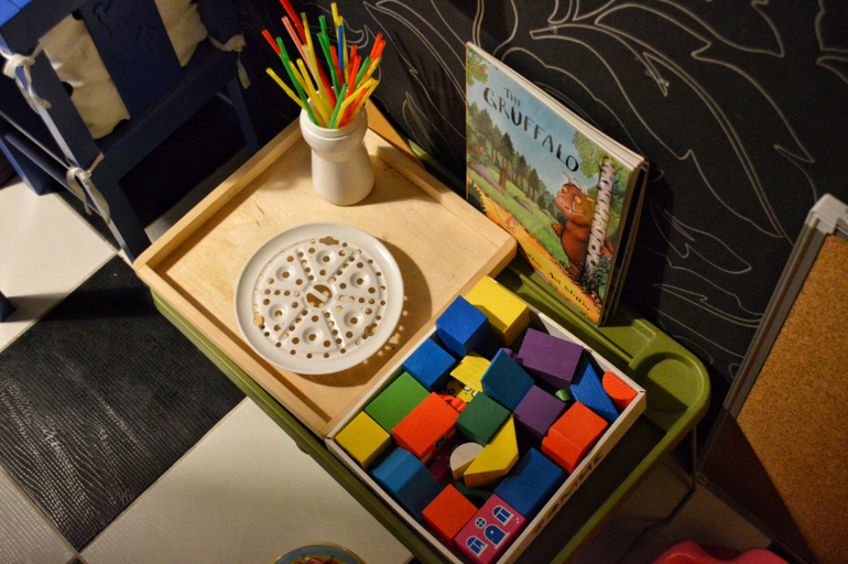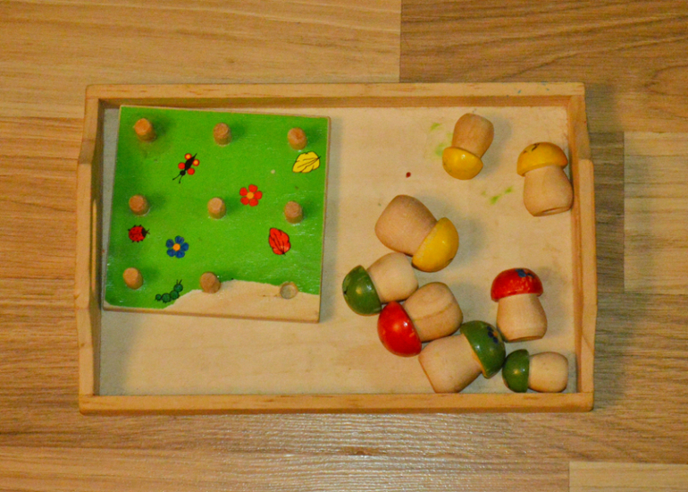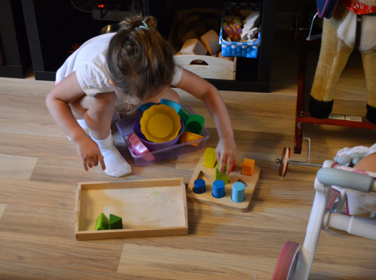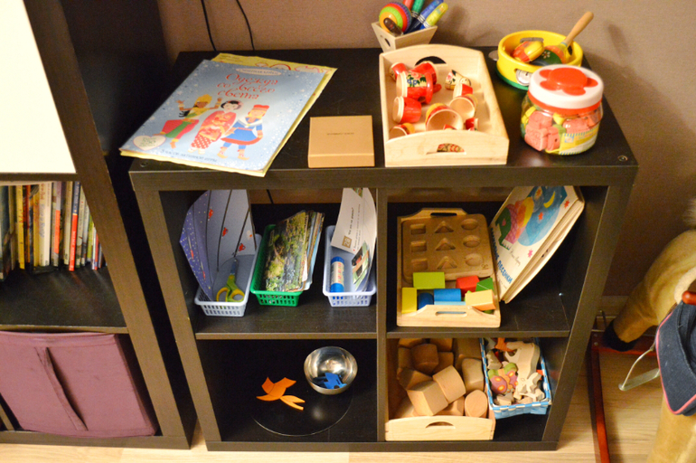 Ещё пример расположения заданий на подносах. Я уже писала, что, как правило, дочь подходит к заданию однократно. Поэтому для меня обновление подносов несколько затратно по времени. Но в общем меня устраивает процесс самостоятельной работы, самостоятельное определение с конкретной задачей , тяга к порядку. Даше сложно играть в помещении, где царит хаос и бардак. Дома сама сейчас убирает игрушки, вижу, что порядок ей нужен,как для внутреннего спокойствия, так и для свободной работы с материалами. В хаосе ведь все теряются, не только дети. Я даже физически чувствую себя плохо в неубранном доме. Очень надеюсь, что эта хорошая привычка к упорядочивания вещей, знаний и умений у неё останется надолго.
