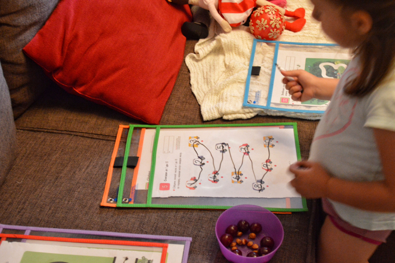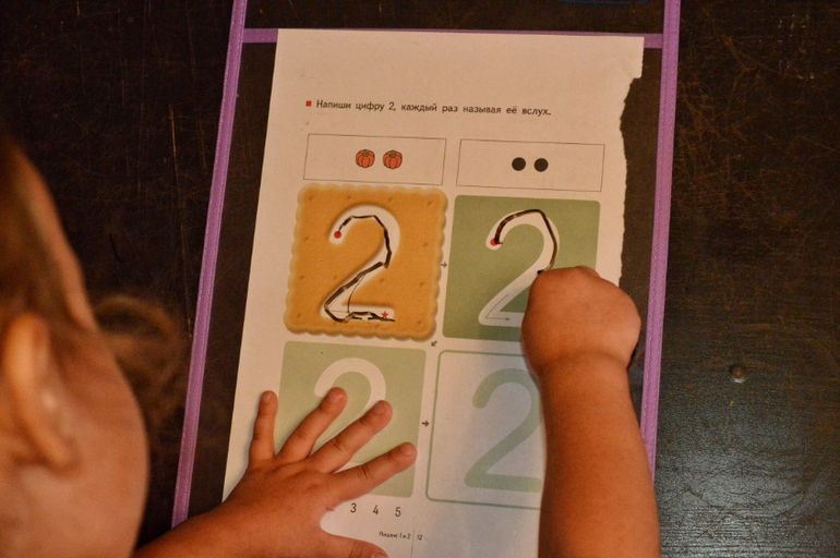 Так Даша сама закрепляет цифры/ буквы, тренирует ручку и мозги.