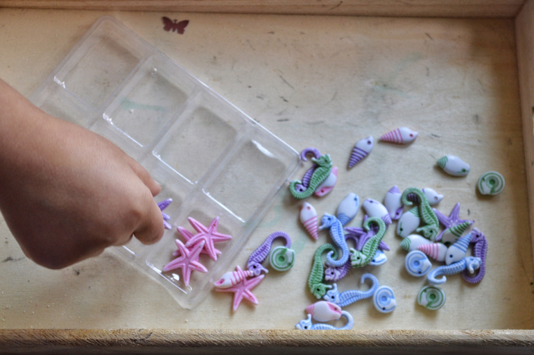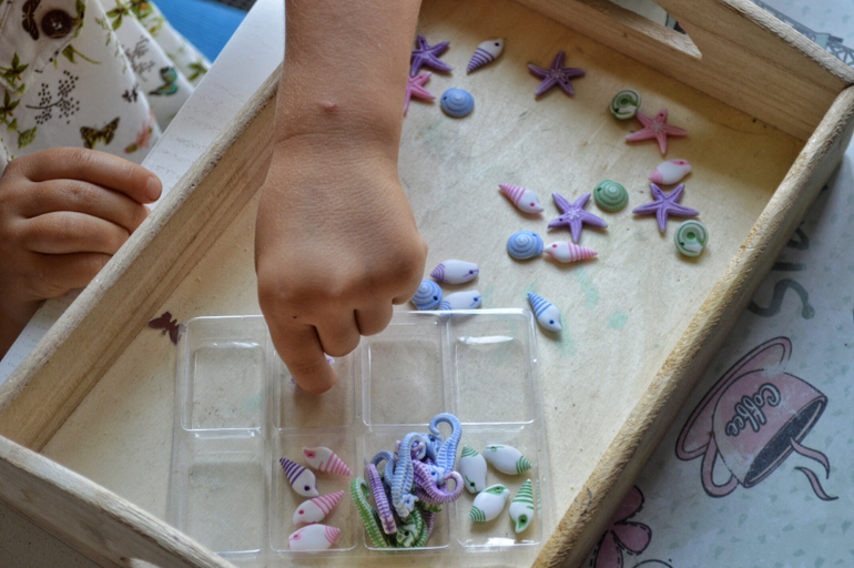 Здесь простая сортировка бусинок. Дочь очень любит любую мелочь приводить в порядок, раскладывать , сортировать по признаку.