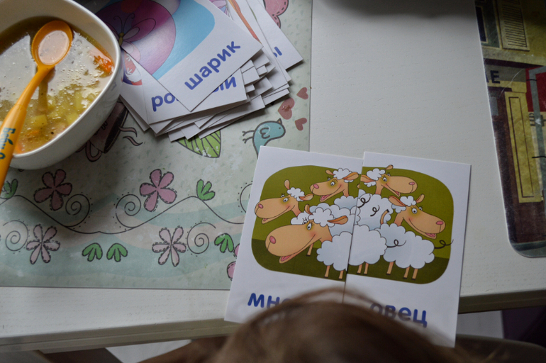 Всю прелесть карточек Умницы " мир на ладошке" понимаю только сейчас. Качество фотографий не айс. Но информация на обороте часто очень полезная. Набор город и деревня мы сортируем по двум группам. На нашем занятии она вслепую выбирает по одной карточке три раза и я рассказываю ей об интересных фактах о животных.