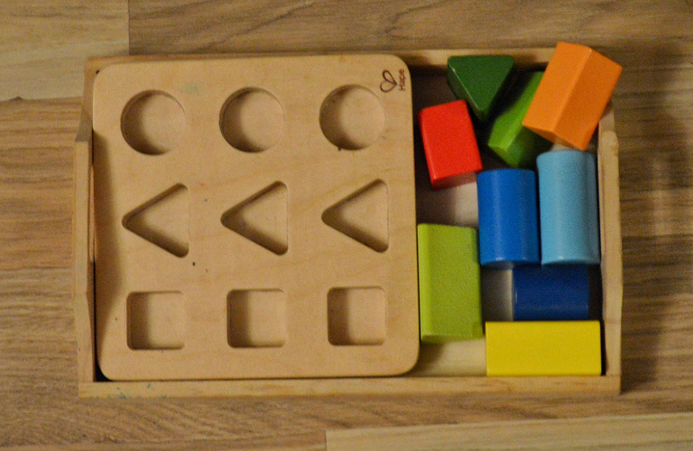 Простые вкладыши. Главное подросшему ребёнку предложить задание не уже выполненное, когда предметы уже вставлены в ячейки или пирамидка собрана. Малышу нужно видеть возможное действие , он вряд ли подойдёт к собранной вещице, чтобы ее разобрать и снова собрать. Заданий не должно быть много на полке, иначе ребёнок потеряется. Ну и конечно стоит поиграть с ним в самом начале, а на следующий день выдать снова для самостоятельной работы.