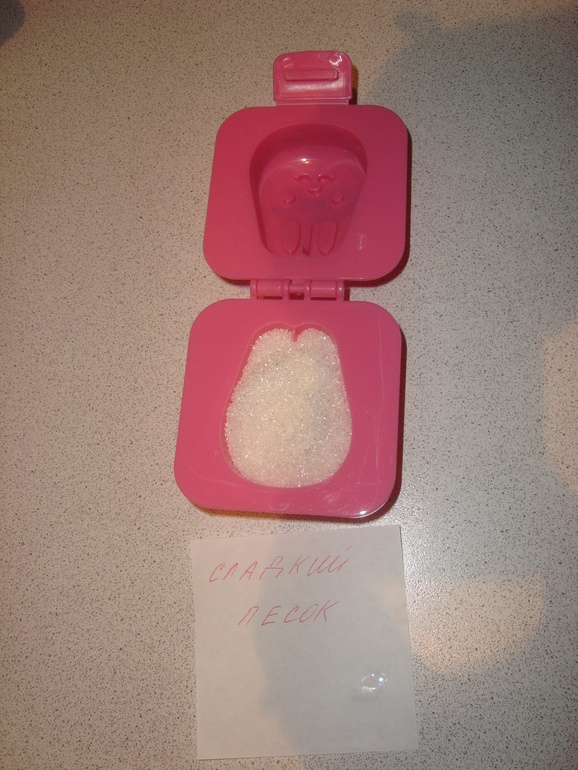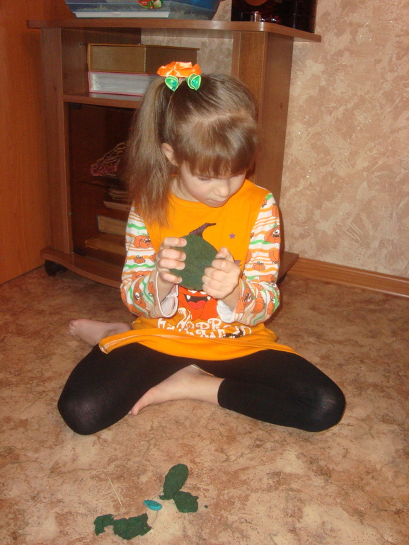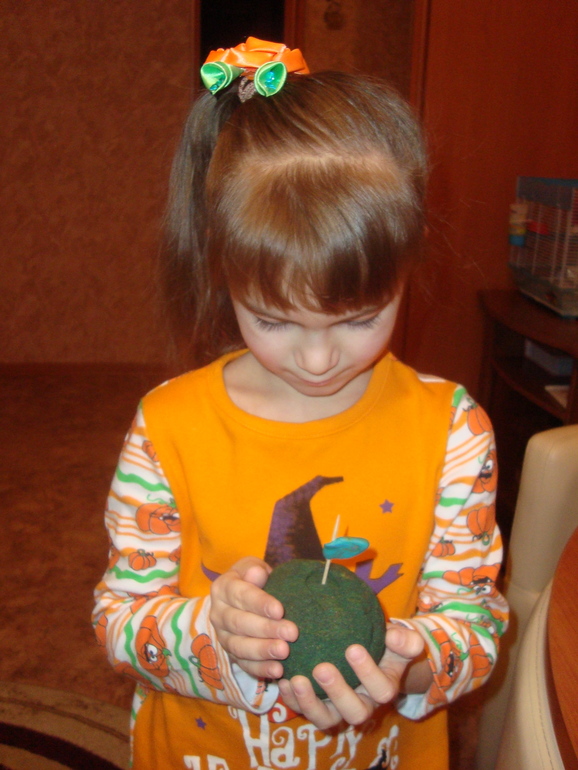 Потом я вручила Тасе яблоко из кинетического песка. Просто отдала и все, чтобы она сама догадалась что же можно с ним сделать.