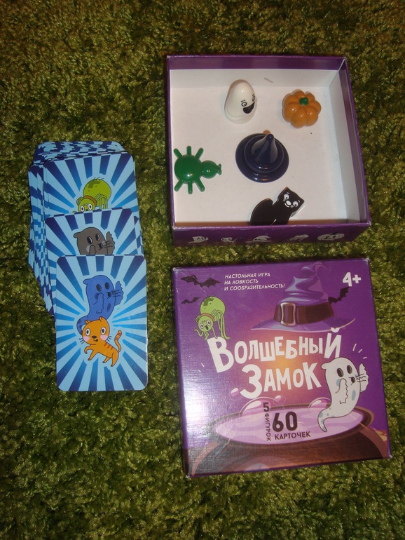 И игра на внимательность и сообразительность. Вытаскиваем карточку и хватаем тот предмет, который есть на карте. Если его нет, то нужно схватить тот, которого там наоборот нет ( по цвету и форме).