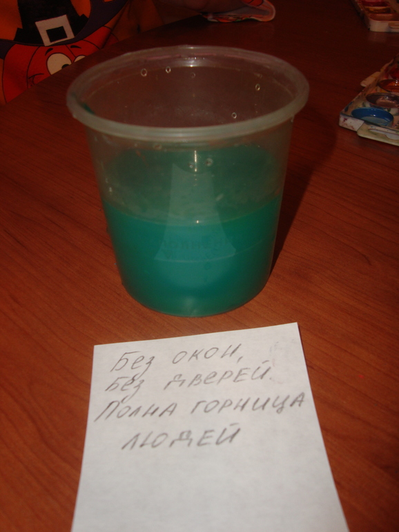 И теперь задание, которое привело Тасю в большой восторг. Ребенок отгадывает загадку и делает из фрукта ( овоща) сок с помощью акварельных красок или гуаши.