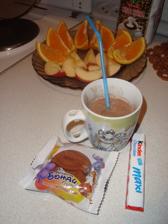 Ребенок зелье не оценил(((( Все-таки приучила Тасю к Несквику, обычное какао пить отказалась.... Может, корица виновата? Пришлось мне наслаждаться)