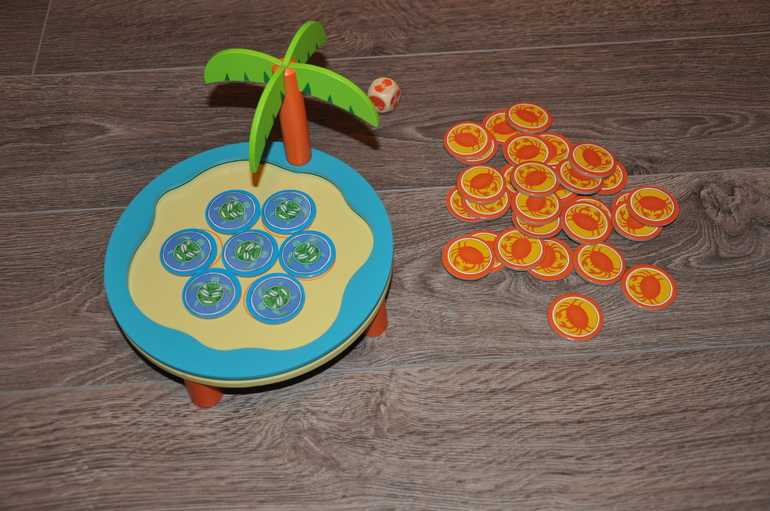 Цель игры - собрать 3 жетона "черепаха", выталкивая их жетонами "краб". За ход можно вставить в игровое поле столько жетонов "краб", сколько выпало на кубике.