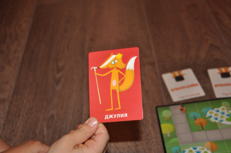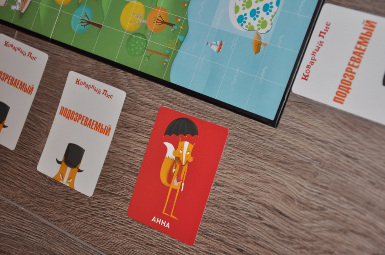 Показательная партия у нас получилась на удивление быстрой - нам почти сразу удалось открыть две подсказки, которые есть у коварного лиса (трость и цветок) и двух подозреваемых с этими предметами (Лили и Джулия):
