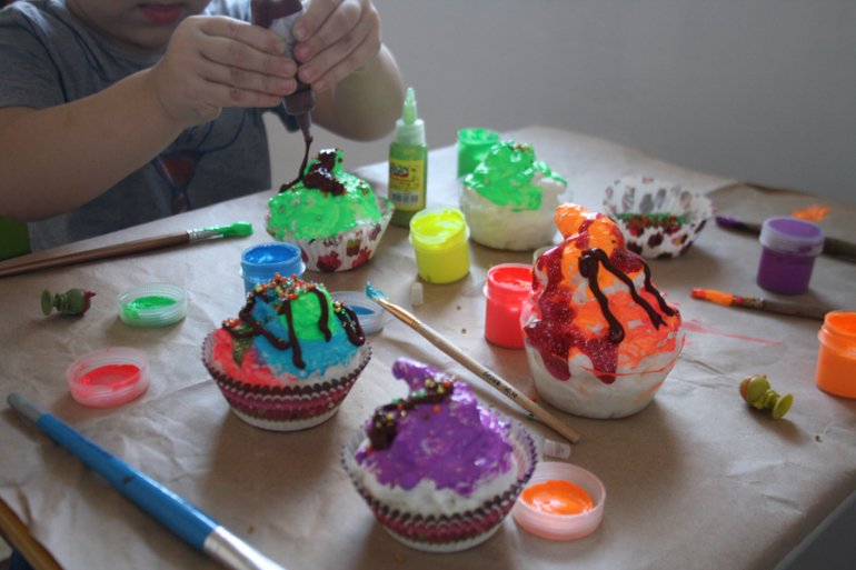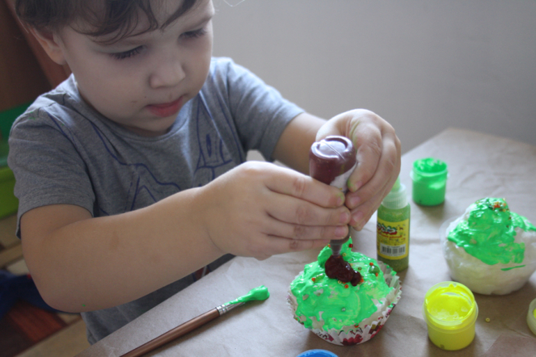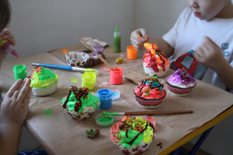 И так, для создания творческих заготовок для юных художников-кондитеров вам понадобится всего две вещи: формочки для капкейков и монтажная пена.