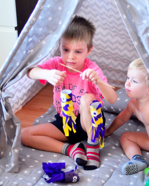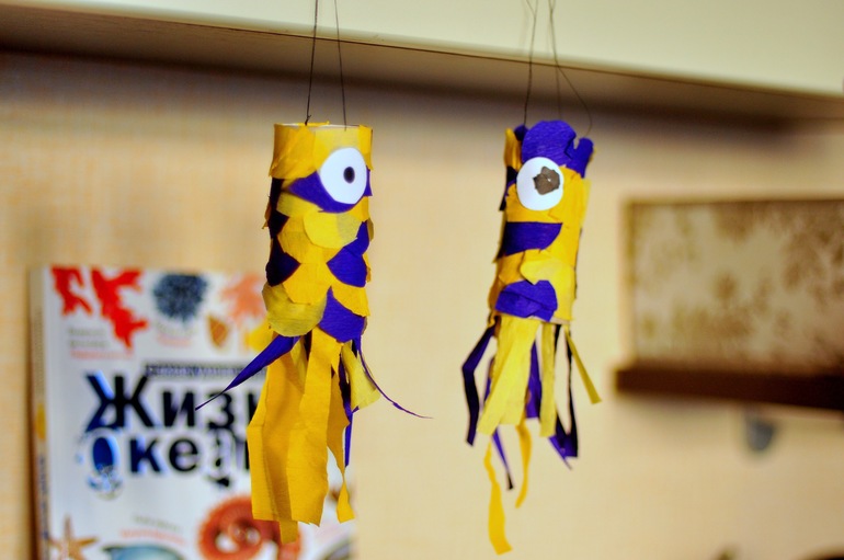 Мы с Егором приделали петли, из ниток, чтобы можно было ловить на удочку при игре 👌😂
