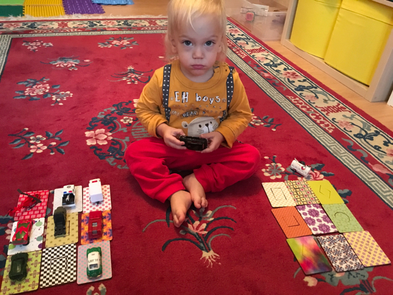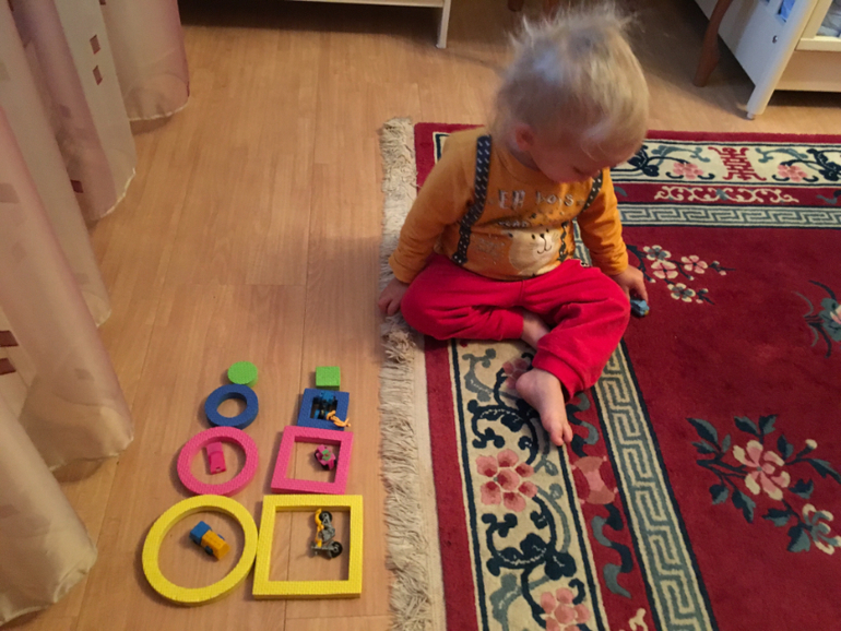 Логика. Добавила парочку новых игр, освоили счёт до 4-ех, вполне осознанно пересчитываем колеса у машины, лапы у кошки и т.д. Дидактические пособия стараемся обыгрывать в сюжетно-ролевых играх. Иначе скучно. Вот здесь подкармливали зверьё деталями от сортера, ну и чаевничали за компанию)