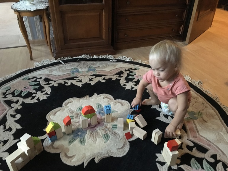 Из нового - сюжетно-ролевая игра развивается хорошими темпами. Из кубиков выкладывает любимой кошке ложе, укладывает, накрывает одеяльцем, при этом очень чисто воспроизводит колыбельные мотивы. Кормит, поит, ласкает, проявляет много любви и внимания.