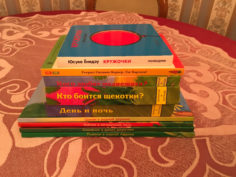 Читаем много. Практически все то время, что не играем. "Аутсайдеры" из предыдущего поста в этом месяце вошли в число приближенных к его святейшеству. Особенно порадовали книга Кружочки - благодаря ей мы твёрдо выучили первую форму, и книги с тактильными вставками у нас пошли после полутора лет.