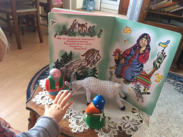 Ставим театральные постановочки. Обыгрываем Рябу - сам выдвигает "сцену", приносит декорации и героев)))