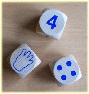 Как играть: Играют по очереди. Младший из игроков начинает - бросает игровой кубик. Теперь он считает и пододвигает к себе такое количество кубиков, столько выпало на кубике. Ход переходит к следующему дуэлянту.