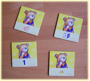 Теперь на веревочке со стороны мордочки Медвежонка получилось новое число кубиков. Произнесите вслух это число. Возьмите из центра стола или у другого участника игры карточку с таким же числом и положите ее изображением вверх перед собой. Если карточка с искомым числом уже у Вас, не повезло.