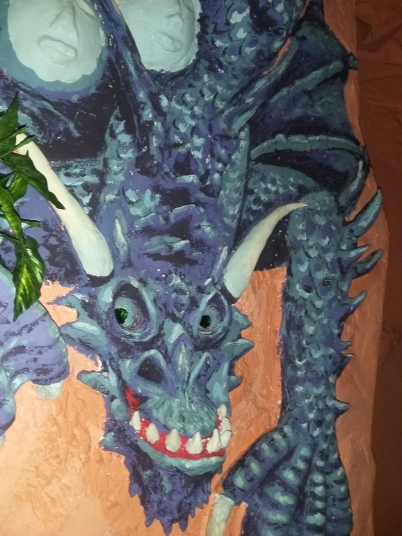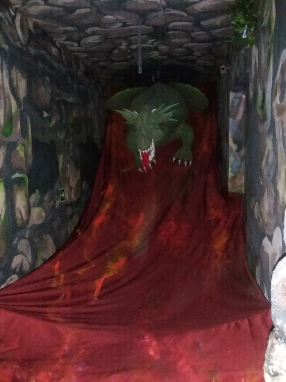 Это при свете вспышки на фото он не страшный! А в темноте с подсветкой и ветерком из пасти, с замогильным рычащим голосом! Вовка вжался в меня и попятился. А сзади то еще один нарисован: