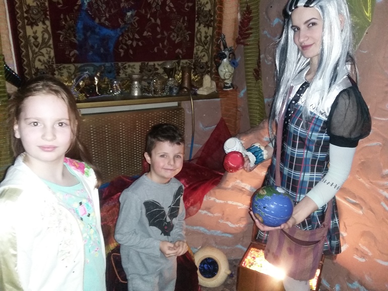 Я в шоке, прошла 21 минуты (анонсировано 50!!!). Четыре маленьких зальчика (как туда могут заявленные 10 детей поместиться - загадка), два перехода, ямка с шариками, 4 загадки, один ведущий... Декорации при этом красивые, много мелких деталей. А сюжет никакой...