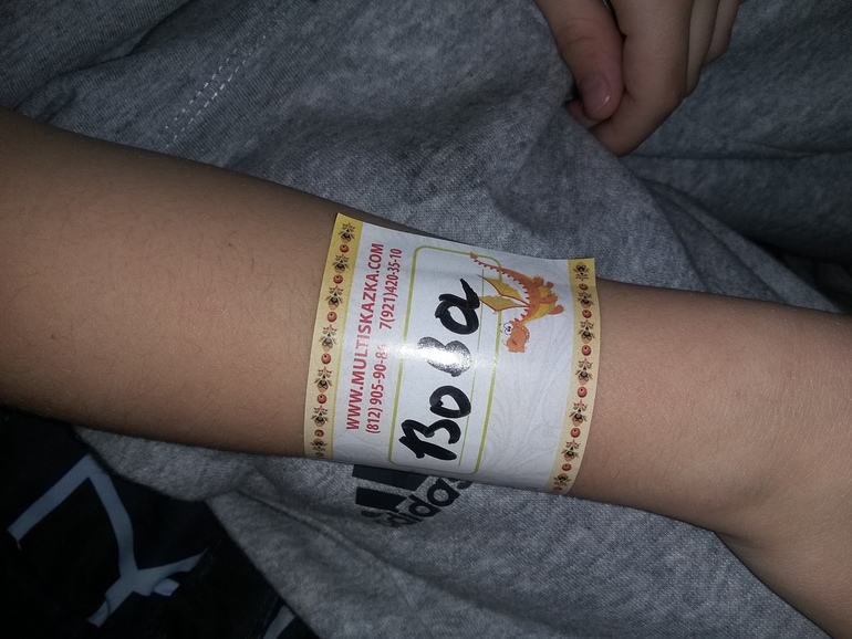 Но вот зазвучала музыка, пришла ведущая - Франки (крашеные пряди, шрамы на лице, черные губы. Удивилась, что дети ее не узнали). Наклеила детям имена на руки (ни разу нигде не пригодились):