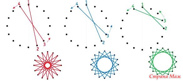 2) вышить солнышко вот по такой схеме