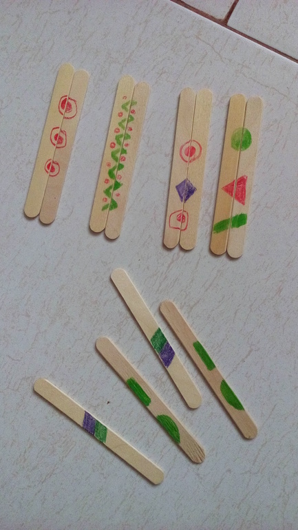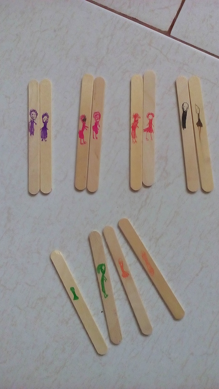 Кажется очень просто для 4-х летки, но можно ещё предложить ребенку нарисовать свой вариант для мамы на обратной стороне тех же палочек. Соня нарисовала лялюшек (для меня они классные).