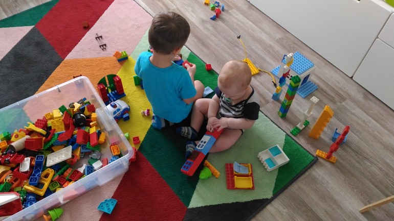 Игры и игрушки для карапузиков от 0 и до годаСтаршему летом будет 5, младшему через месяц - годик. Как занять игрой обоих и так, чтоб одновременно? и чтоб младший не мешал строить фабрики и заводы старшему?