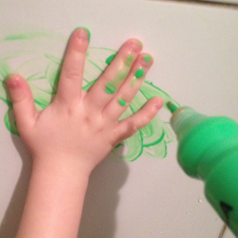9. Рисуем на стене. Тут главное заранее проверить краски. Бывают такие, что и не смыть. У нас обычные икеевские. Рисуем, потом размазываем. Я не очень часто их даю, если честно.