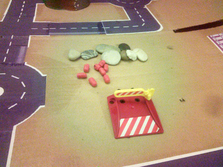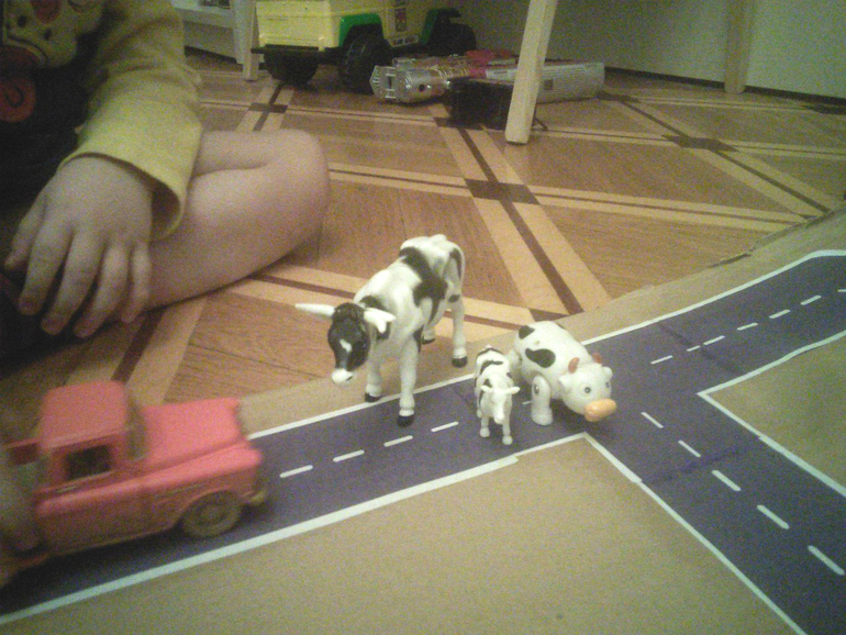 Игры и игрушки для детей от 2х-до 3-х летСегодня буквально за 2 минуты соорудили с сыном игровое поле по сюжету игры "это грузовик, а это прицеп" (просто быстро подоставала из ящиков все подходящие объекты)