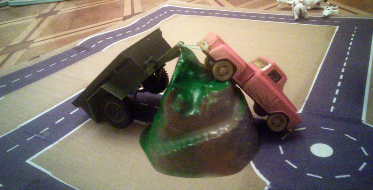 Началось с того, что сын решил, что неплохо бы поиграть в грузовик с прицепом.