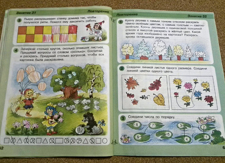 В отличии от "Игралочки", Кац каждому заданию отвела отдельную страницу. Можно не ограничиваться рамками одной темы, а смело решать всё подряд, пока не надоест.