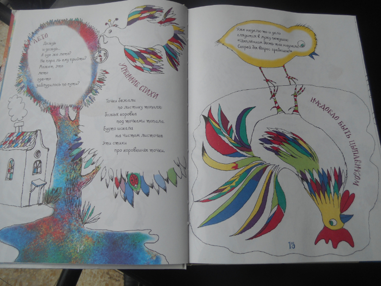 Зачем столько? Ведь дома уже лежат "Однажды, а может быть дважды", "Хорошая плохая погода", "Ужаленный уж" и сборники. Как ни странно, на надо. Во-первых, это книга не только Ренаты Мухи, но ее "вечного" соавтора и друга Вадима Левина. Во-вторых, здесь не только стихи, но и рекомендации по чтению книг детям, что очень ценно, ведь Рената Муха была не только известной поэтессой, но в первую очередь признанной рассказчицей. А в третьих, несмотря на то что у меня столько ее изданий, в "Между нами" есть для меня новые, ранее не читанные стихи.