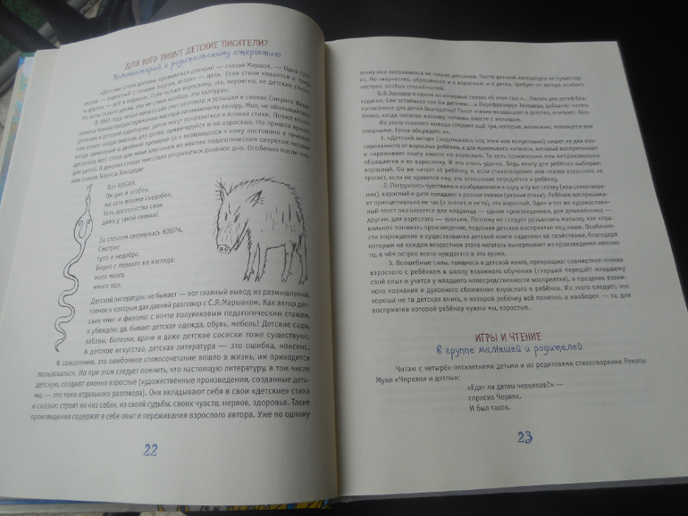 Но авторство нужно проверять в содержании, что чуть неудобно. Вторая часть не менее внушительная по объему и затрагивает такие вопросы, как когда ребенок начинает радоваться поэзии, что читать на первом году жизни, от года до трех, от трех-четырех до шести-семи, как поощрять самостоятельное чтение, чтение в младшем школьном возрасте. Нам пока еще актуальны потешки, и в книге Вадим Левин приводит очень любопытные примеры, вот например стишок-игра про мышку, которую за пределами Украины мало кто знает: