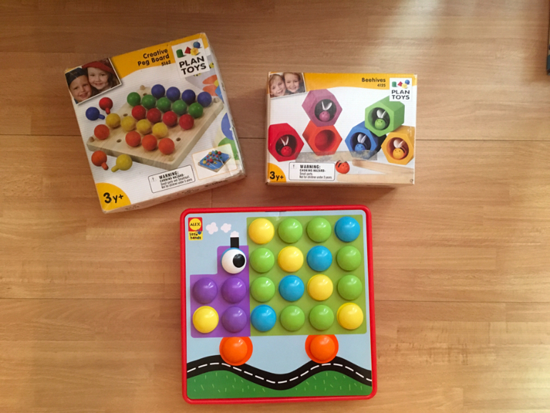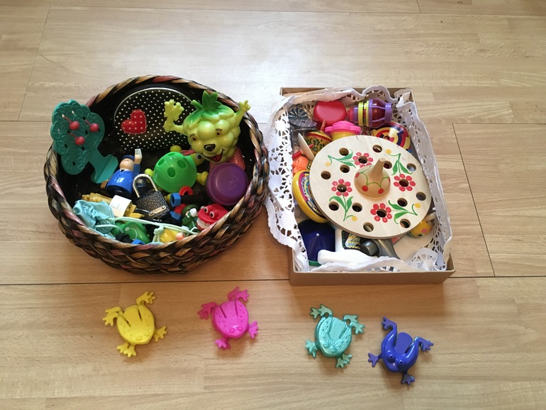 3) Замки, застежки, молнии, крышки, мешочки на завязках, гайки с болтами, точилки для карандашей, заводные игрушки, волчки - все, что требует тонких моторных движений.