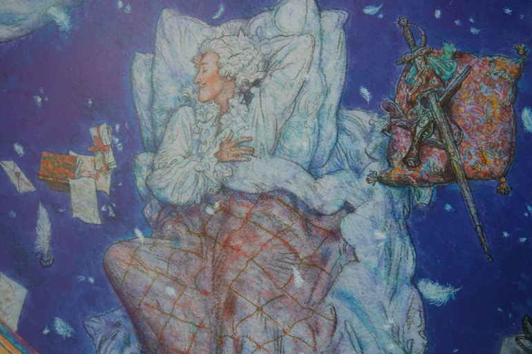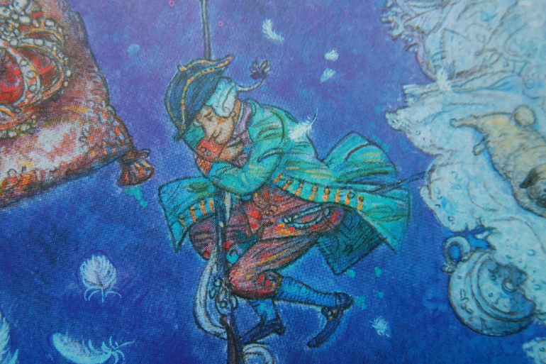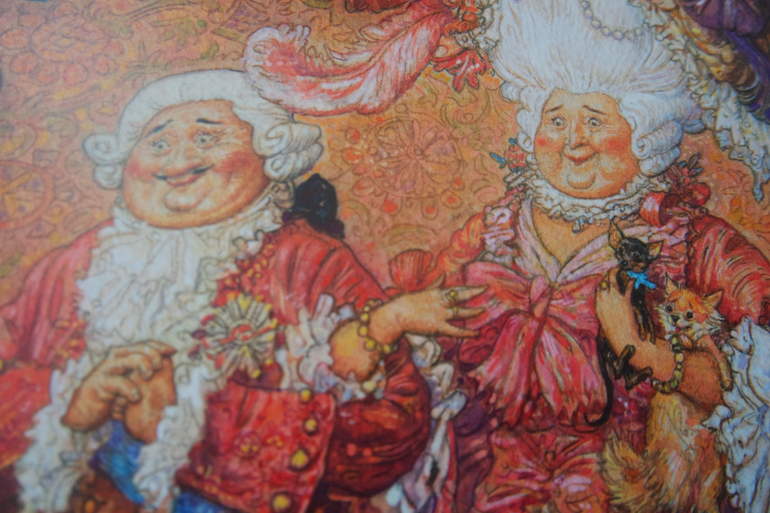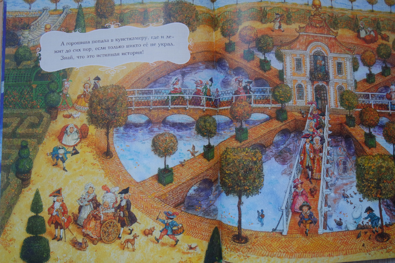 Не передать словами сколько восторженных чувств вызывает у меня "Принцесса на горошине" с иллюстрациями Антона Ломаева. Художник рассказывает, что появлению книги предшествовала прогулка по пригородному парку в один из последних осенних солнечных дней. Когда-то по его дорожкам ходили настоящие императоры и императрицы, принцы и принцессы, фрейлины и придворные...