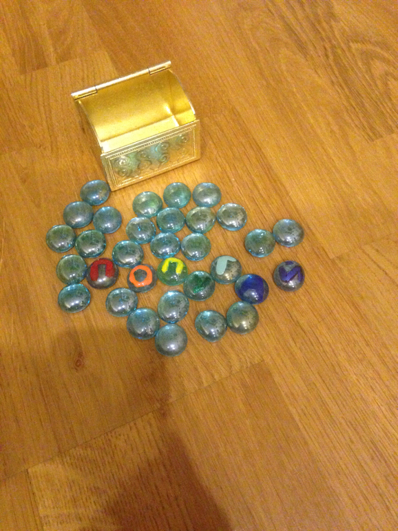 "Мммм...сокровище - камни" - сказала Полина. Но к их счастью, это ещё не конец. На камушках обнаружились разноцветные буквы, из которых складывалось слово попугай. Для подсказки буквы были по цветам радуги. Сверилились с картой и решили, что попугая надо искать на дереве, отправились искать большое раскидистое дерево прямо у воды.