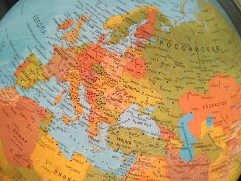 Подсвечивается политическая карта мира, видны границы и названия страны. Сразу становится наглядно размеры и с кем граничит та или иная страна. Кстати в этом глобус Крым уже в составе России, так что данные самые свежие.