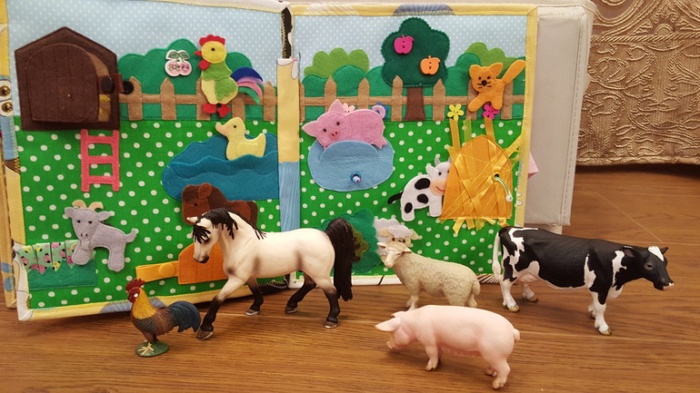 6. И самое важное. Нам очень нравится с ними играть, слушать про них песни и доставать с полочки, выстраивать в очередь, купать, кормить, садить на горшок, слушать звуки, которые эти животные издают по звуковым книжкам и соотносить животных с этими звуками, а ещё мы часто берём их собой в поездки и на прогулки. Кроме того, фигурки очень помогают в обыгрывании книжек и сказок: