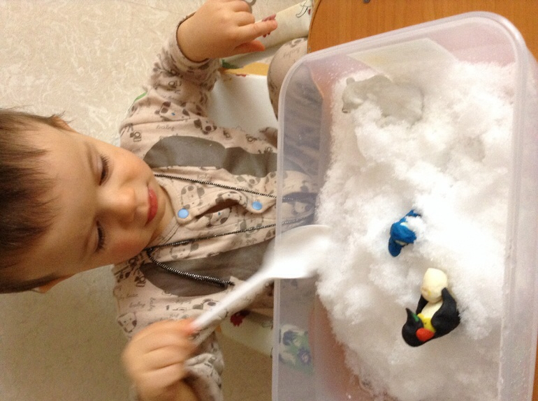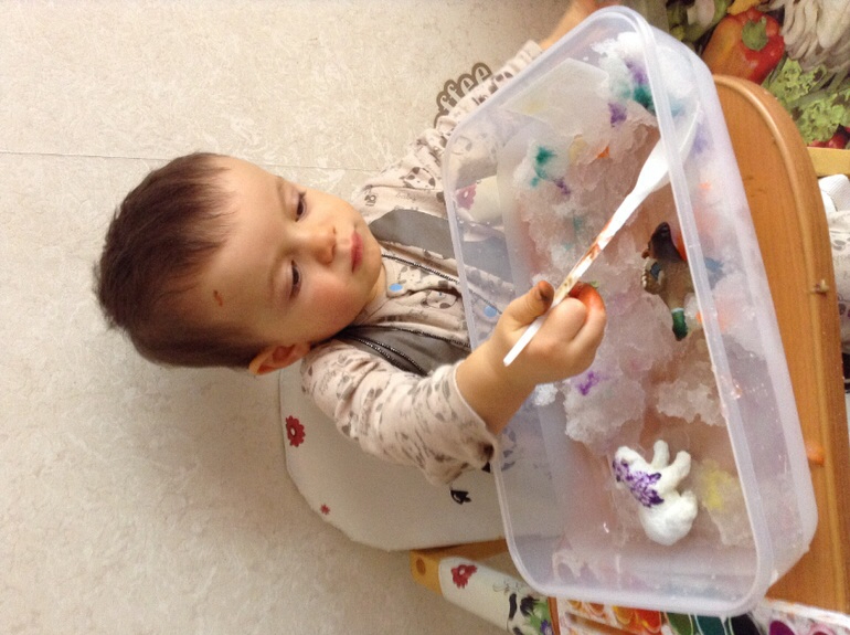 по опыту прошлых лет, Давиду понравились игры со снегом, цветным льдом, спасением животных из ледяного плена; хорошо получались аппликации снеговиков из ватных дисков,