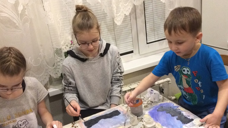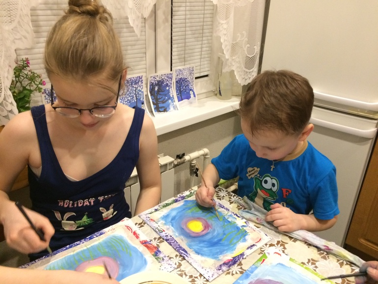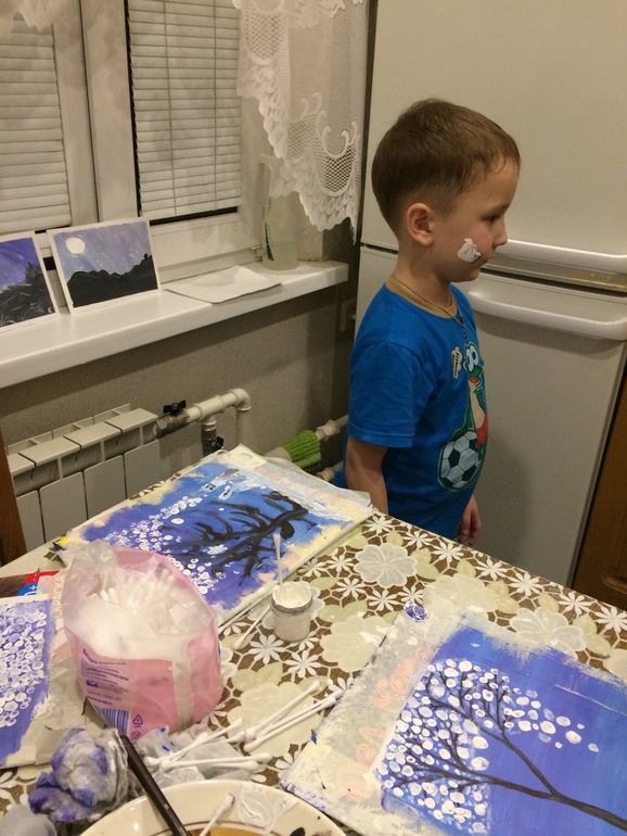 Художка ( красим, рисуем , придумываем новые способы рисовать)А как проходит ваша рождественская неделя? А на улице у нас слякоть и не балует нас Погода зимним настроением. И мы снова рисуем с Аленой, совершенно бесплатно. (Ссылки я делать не умею, но попробую ) Знаете девочки, как здорово!!! Сегодня мы рисовали в четвёртом, Аня 11 лет, Варя 10 лет, Кир 5 лет, Танечка 42 годика😂. Позже к нам соблазнившись присоединилась бабушка. Попробуйте и вы. Настроение отличное, а как успокаивает. И главное у всех получается красота. Дома у бабушки вернисаж. Рисунки Кирилла